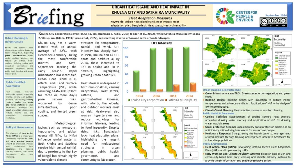 City Risk Profile of Bagerhat and Satkhira Municipalities Under this project, the Center for People and Environ has investigated climate vulnerability in the urban systems, impact of heat on urban health, and developed urban systems resilient planning, heat adaptation plan, multisectoral collaboration and engagement plan, early warning and climate information…